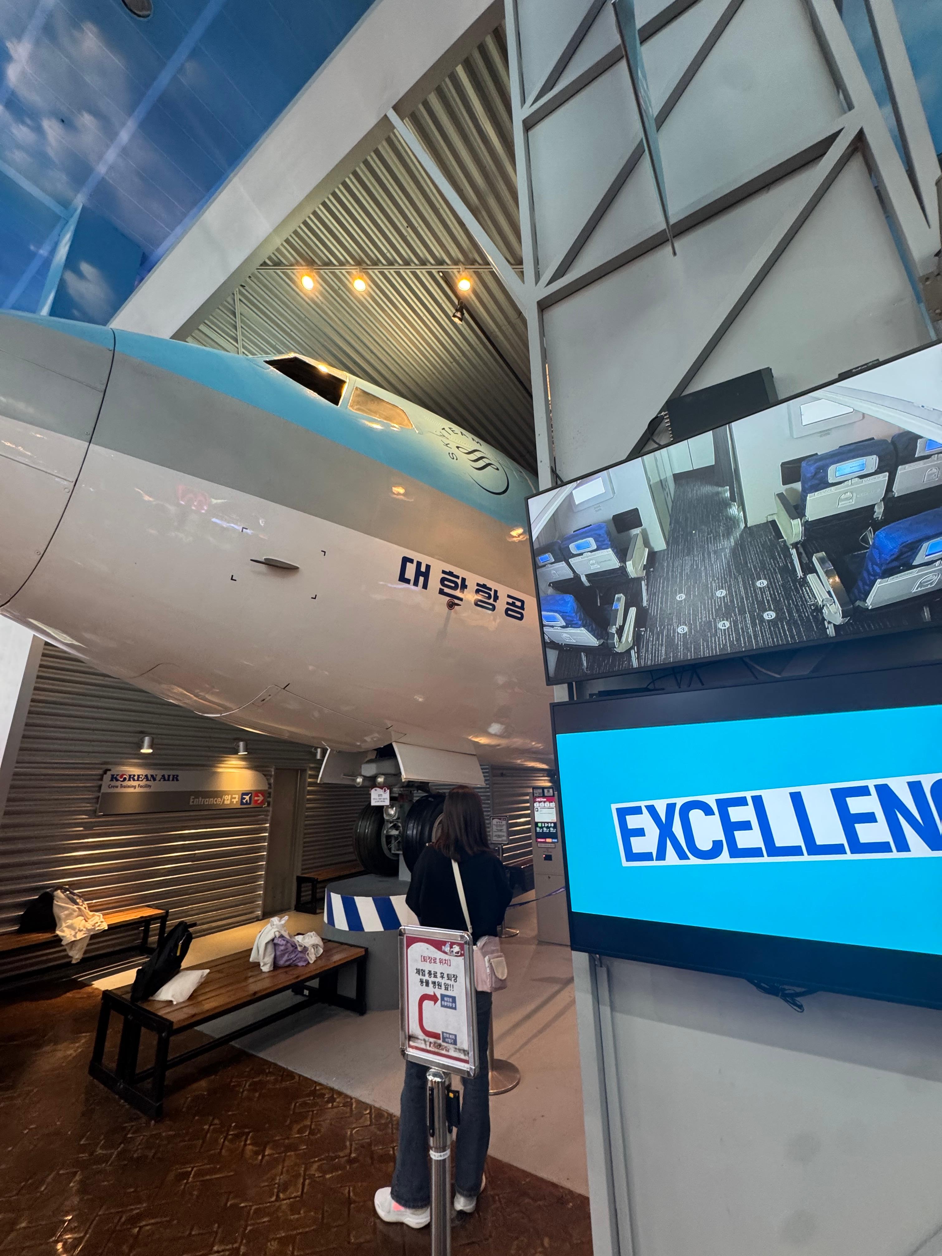 - 승무원 체험은 모니터로만 볼 수 있었습니다. 체험관 앞 설치된 모니터로 아이들이 기내 서비스를 배우는 모습을 볼 수가 있는데 인기 코스라고 했지만 저는 체험을 해보니 개인적으론 좀 아쉬웠습니다. 모니터 화질이 좋지도 않았고, 아이가 기대했던 것과 달리 딱히 재미있어하지 않았습니다. 조금 큰 초등학생 언니들을 보니 승무원 옷을 (상의만) 입고해보는 것 자체가 즐거워 보이긴 했는데, 우리 아이는 어려서부터 해외에 거주하시는 저희 친정 부모님 덕에 거의 계절마다 비행을 했음에도 불구하고, 승무원이라는 직업 자체에 환상이 없어서인지 즐거워 보이지 않았고, 체험 후에도 물어보니 역시나 딱히 재미가 없었다고 하더라고요. 특히 함께 체험한 친구들 중에 또래로 보이는 남자아이 한 명이 있었는데, 남자 승무원은 조끼 하나 딱 입혀주는 것이 다라서.... 뒷말은 생략하겠습니다 ;